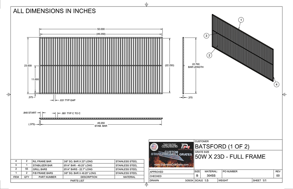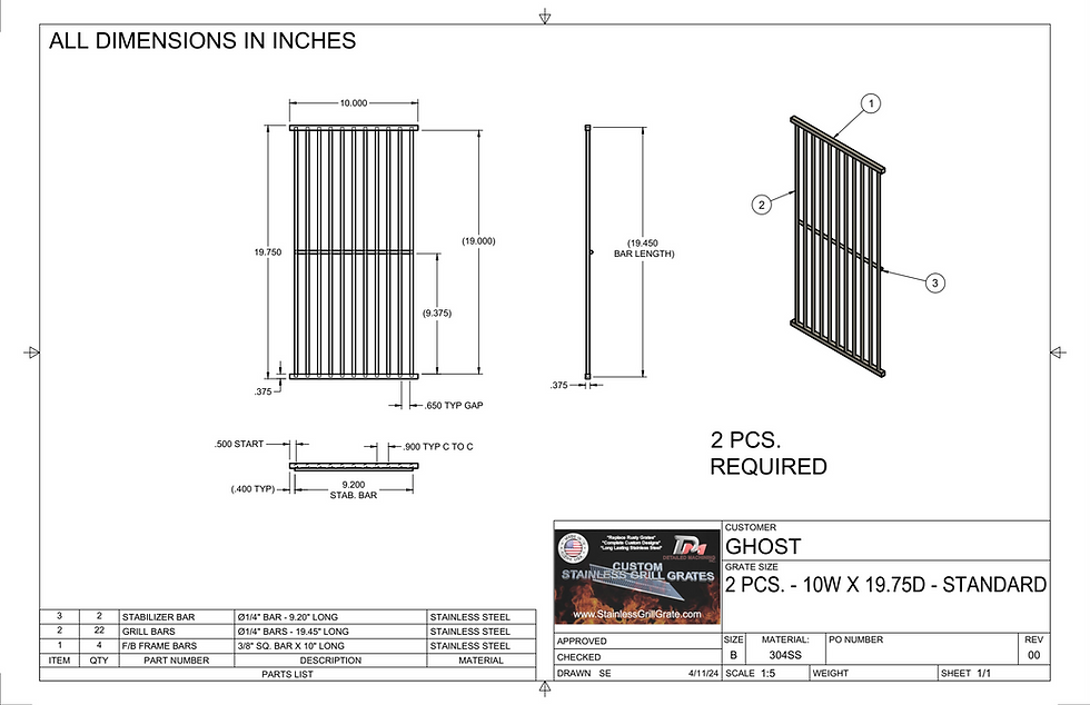 If you know exactly what you want and are ready to order, fill out the form, provide us with the information needed, and submit it. Our team will email you back shortly after receiving your order with a link to review it and ask for final approval. Then, we'll create your new grill grate and deliver ASAP!